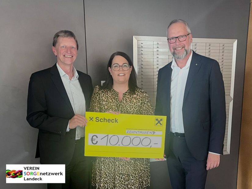 Gegründet im Jahr 1898 begeht die Raiffeisenbank Oberland-Reutte heuer ihr 125-jähriges Bestandsjubiläum. Aus diesem Anlass unterstützt die Raiffeisenbank Oberland-Reutte den Verein SORGEnetzwerk Landeck mit einem Betrag in Höhe von 10.000,00 €.
